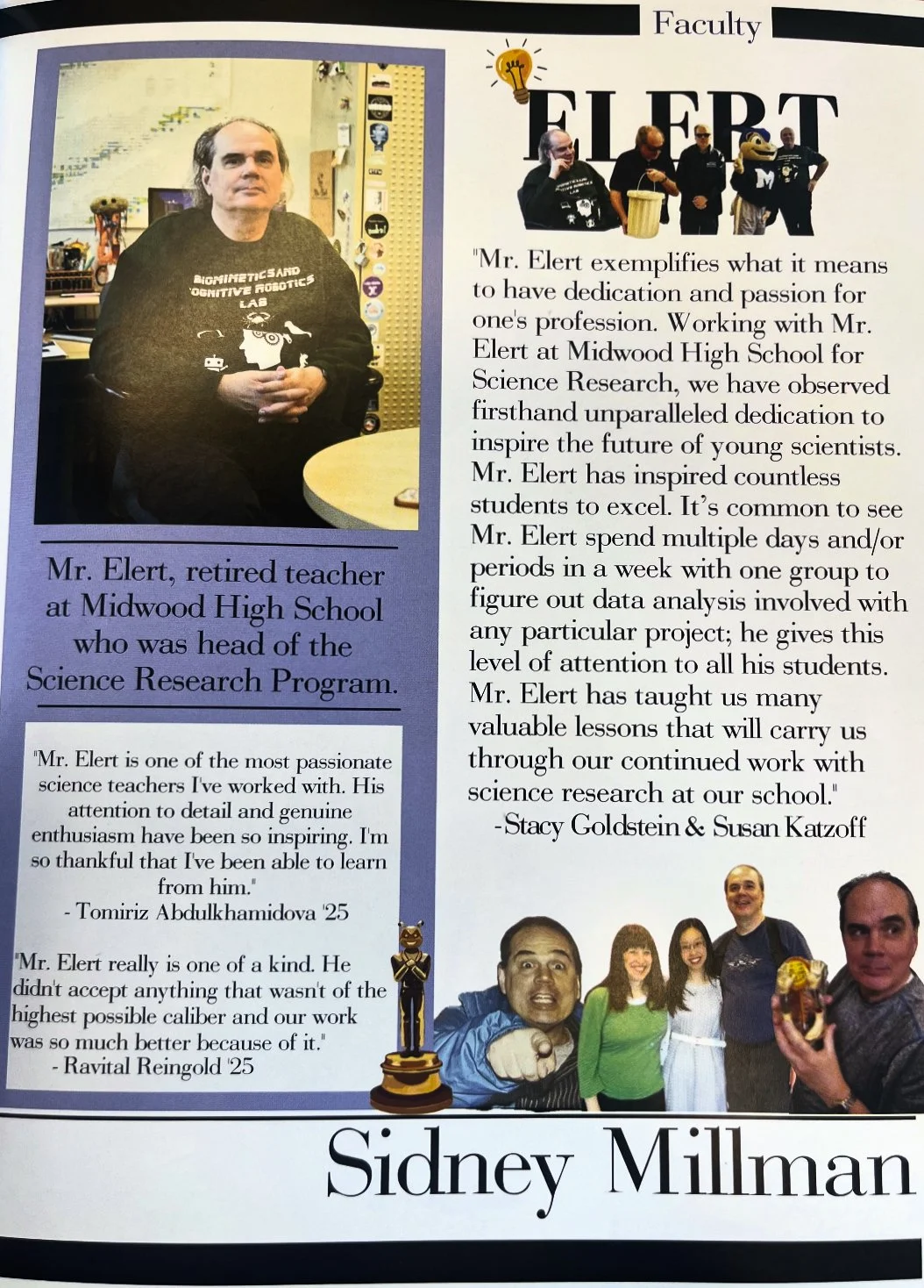 Mr. Elert is the former Science Research Coordinator and esteemed Physics Teacher at Midwood High School.
